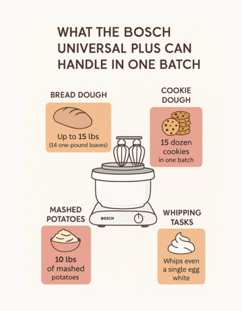 With its roomy bowl, bottom-drive motor, and wide range of attachments, the Bosch Universal Plus promises a stand mixer that delivers muscle for heavy doughs, precision for small batches, and the convenience to handle everything in between.